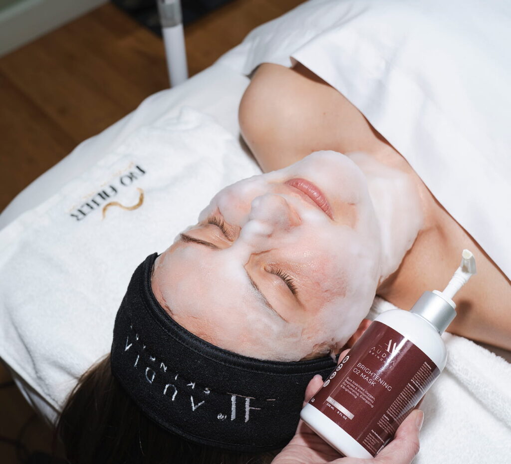 The session begins with a thorough cleanse and exfoliation, followed by precise extractions. After that, your provider will apply a series of targeted serums, hydration masks, and finishing products to balance.
