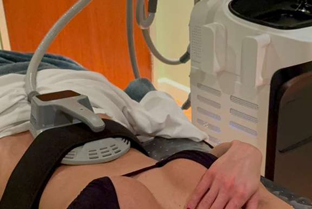 The device is placed on the selected area and delivers electromagnetic pulses that cause deep, rhythmic muscle contractions. The sensation feels like an intense workout without physical strain.